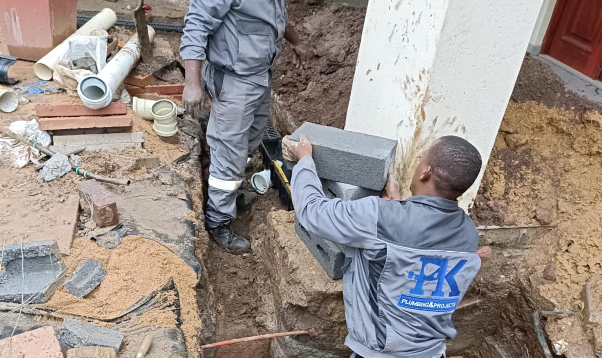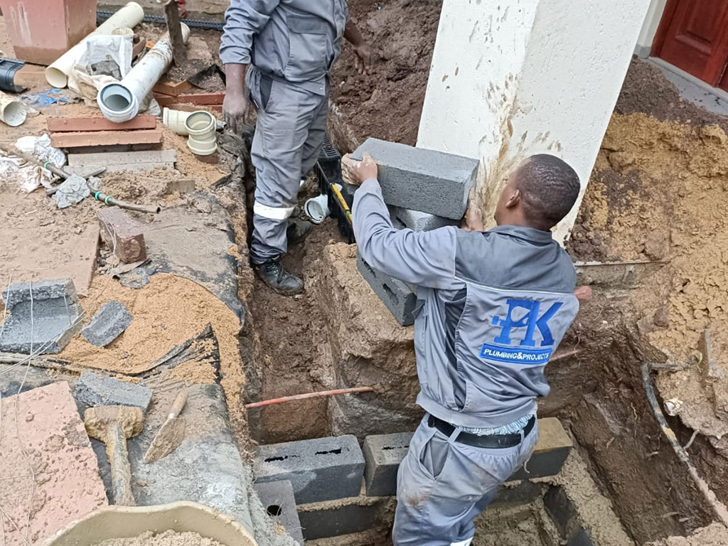 PK Plumbing, Since its formation has already showed it's capabilities by successfully being able to do the big plumbing construction project under the main contractor Shumanie Construction, wherby PK Plumbing had to assist on renovating the military base at Kensington Johannesburg. On this project Pk Plumbing has installed new 150 metres of drain line with four man holes on it. Also constructed seven new bathrooms from scratch, each bathroom having toilet, shower and basin. Installed four of 400 litre geysers a n d four heatpumps one for each . This plumbing project was successfully completed on November 2018.